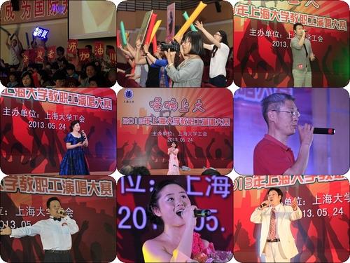 正式比赛高潮迭起。来自29个学院(系统)的才艺高手个个充满自信和活力,举手投足间透出十足的明星范。文学院崔佳老师的《我和我的祖国》、社区学院姜虹老师的《今天是你的生日》以及后勤集团的谈勤英老师的《我爱你!中国》,唱出了我校教职工对伟大祖国的衷心依恋和真诚歌颂;生命学院任萍萍的笑容、忘情的演唱,将一首《甜蜜蜜》唱得如痴如醉;机关系统章毓育老师带来了一首《飞翔飞翔我飞翔》,洋溢着青年教师的青春与朝气;理学院的熊革老师演唱《朋友,别哭》时,台下几十位学生粉丝高呼“歌颂上大,雄霸天下”,有学生高举“熊哥,加油!”的标语,将比赛推向了高潮。